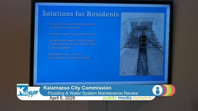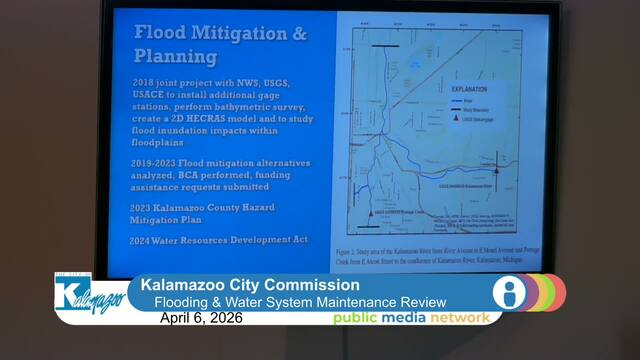 Director of Public Services James Baker presents a review of Kalamazoo Water Maintenance Systems focusing on Flood mitigation and stormwater management. Residents express concerns about severe flooding impacting homes and infrastructure, particularly around Cobb, Woodward, and Patterson streets. Residents also discuss traffic safety near Howard Street and West Engine Park. Director Baker provides an in-depth presentation on the city's stormwater system, detailing the challenges of managing urban flooding, riverine flooding, and groundwater issues. He explains the complexities of the stormwater infrastructure, its maintenance needs, and the city's efforts to implement solutions such as green infrastructure and improved drainage systems. The meeting also highlights the need for regional cooperation and continued investment in stormwater management to address flooding and its impacts on residents.