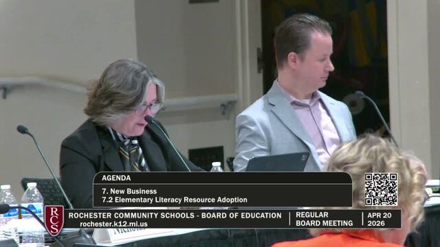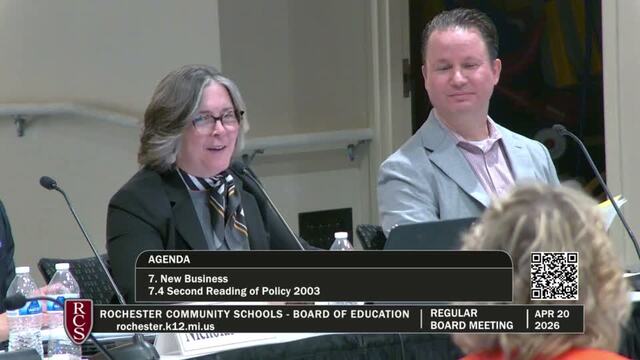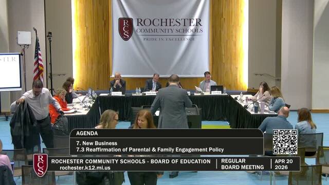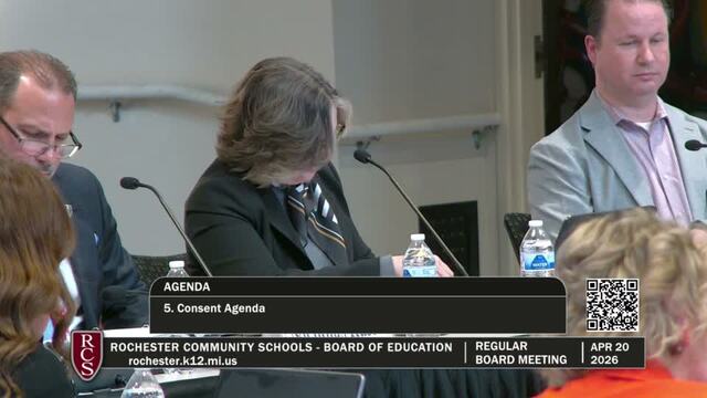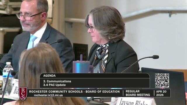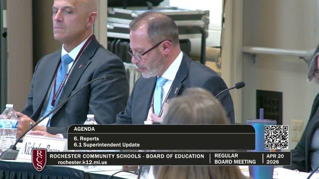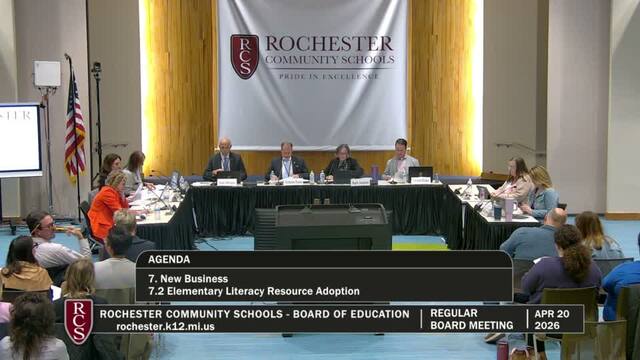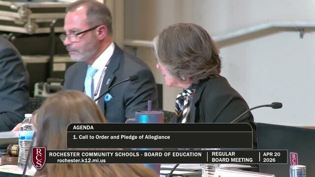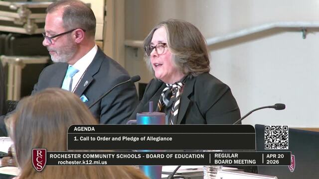Rochester Community Schools Board of Education Regular Meeting; Held Monday, April 20, 2026; RCS Early Childhood Education Center 3838 N Rochester Rd Rochester MI 48306. Produced by CMNtv.