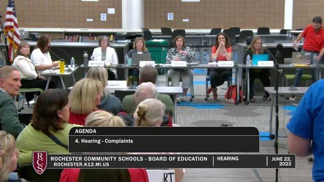 Rochester Community Schools Board of Education Hearing; Held Thursday, June 22, 2023; Rochester High School. Produced by CMNtv.