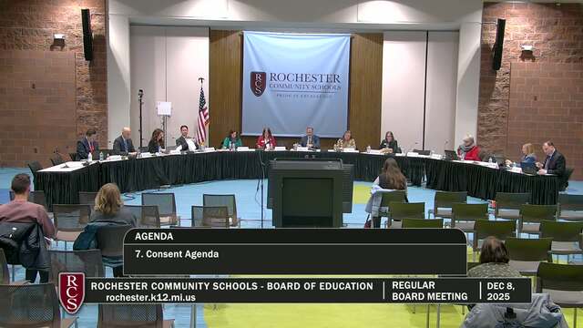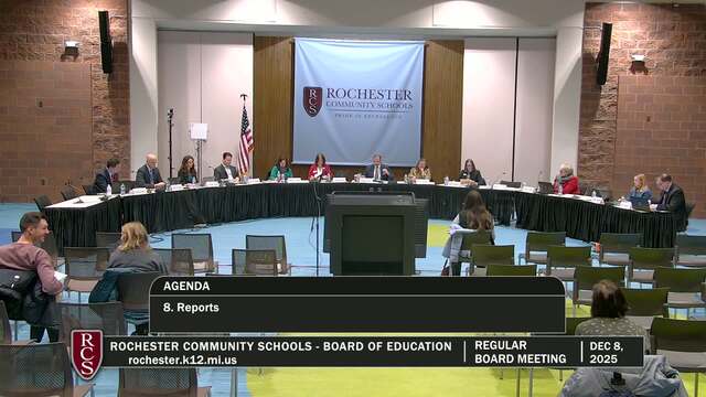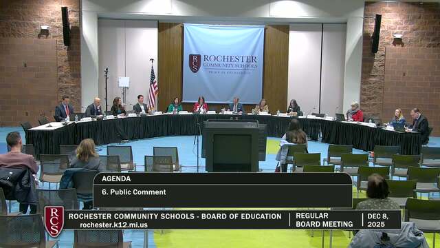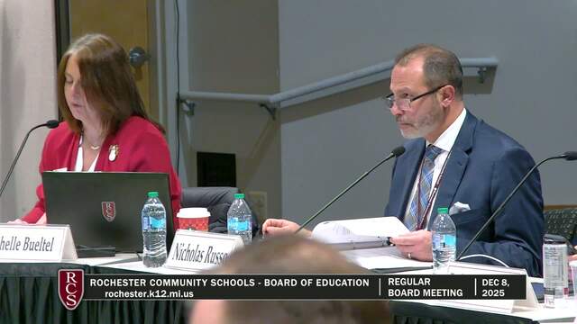 Rochester Community Schools Board of Education Regular Meeting; Held Monday, Dec 8, 2025; 3838 N Rochester Rd Rochester MI 48306. Produced by CMNtv.