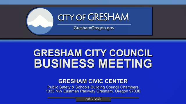 Coverage of the Gresham City Council meetings, live at 6:00 pm on the 1st and 3rd Tuesday of each month. 4-7-26