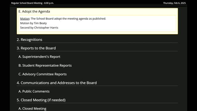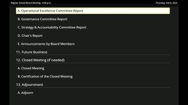 February 6, 2025 School Board Meeting
