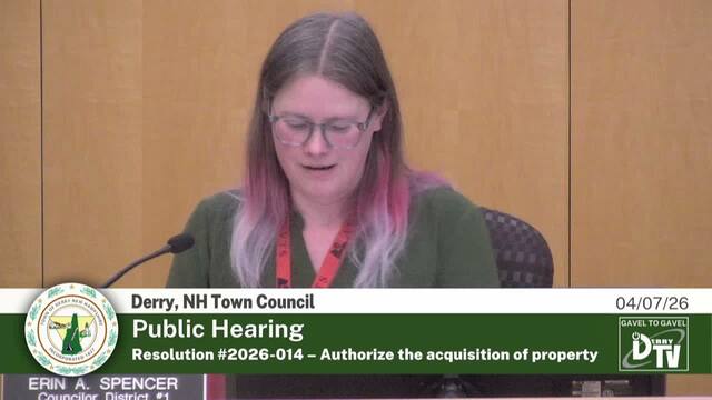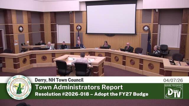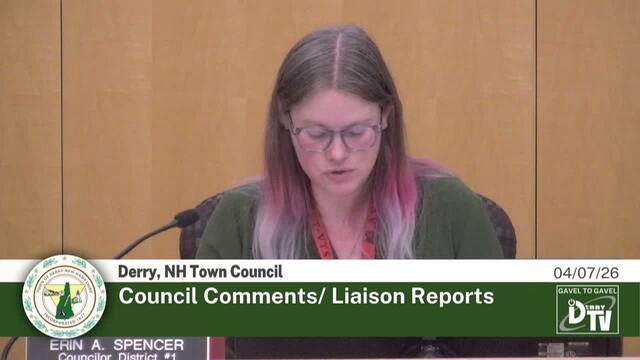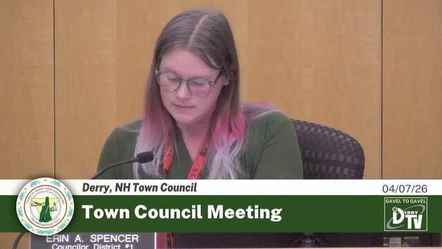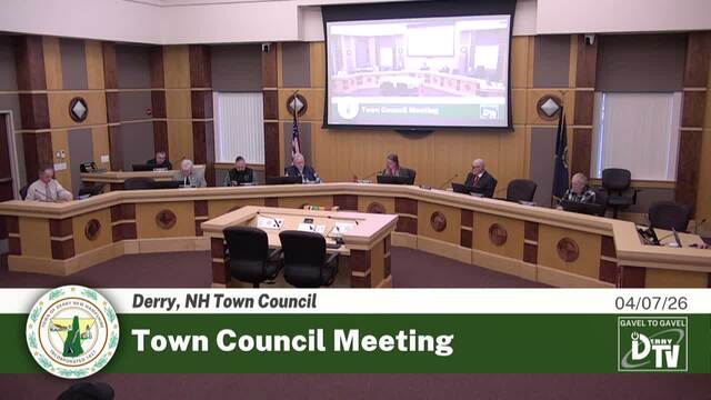 Derry NH's Town Council Meeting on 04/07/26, Coverage powered by DerryTV a Division of DerryCAM Closed Captions are auto-generated