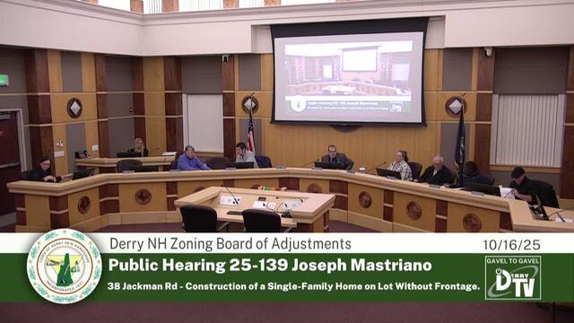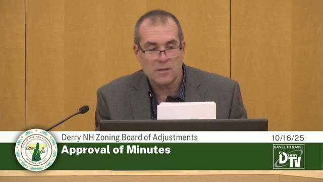 Derry NH's Zoning Board of Adjustment Meeting on 10/16/25, Coverage powered by DerryTV a Division of DerryCAM
