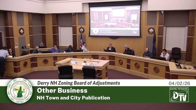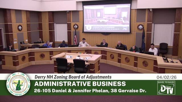 Derry NH's Zoning Board of Adjustment Meeting on 04/02/26, Coverage powered by DerryTV a Division of DerryCAM Closed Captions are auto-generated