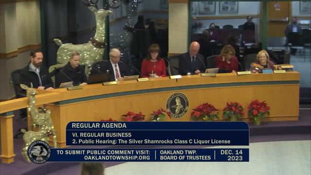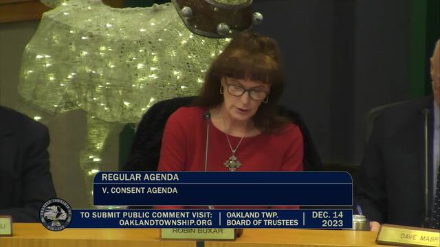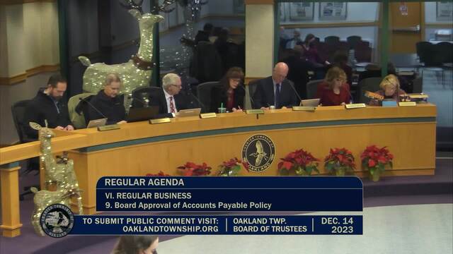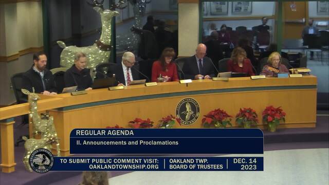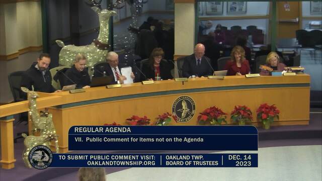 Board of Trustees Meeting held December 14, 2023; Oakland Township 4393 Collins Rd Rochester MI 48306. Produced by CMNtv.