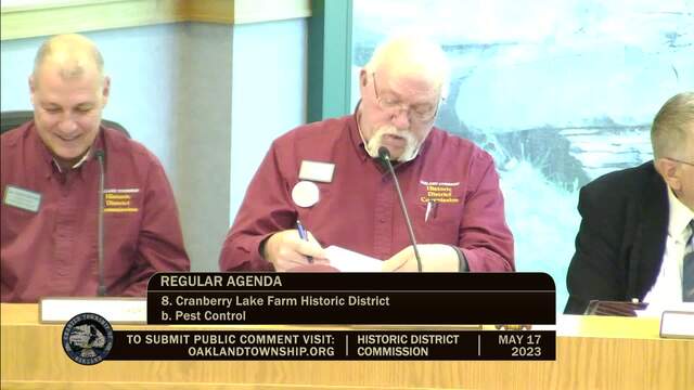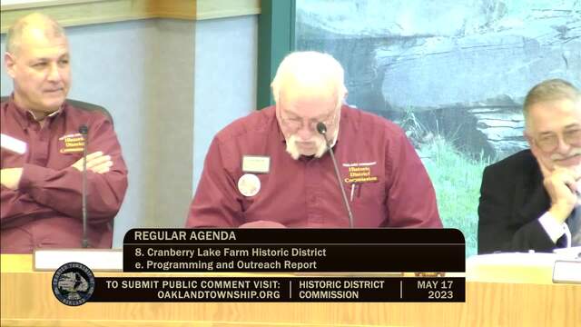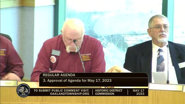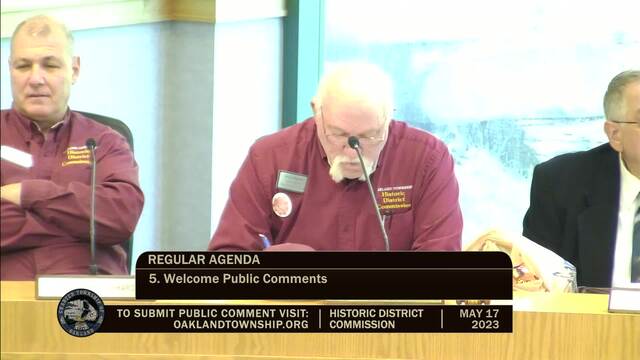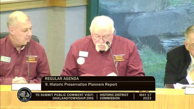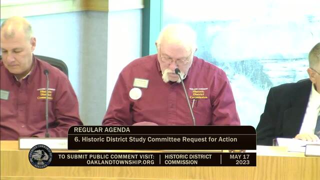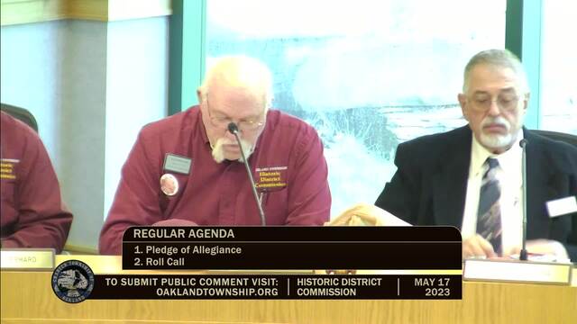 Historic District Meeting held May 17, 2023; Oakland Township 4393 Collins Rd Rochester MI 48306