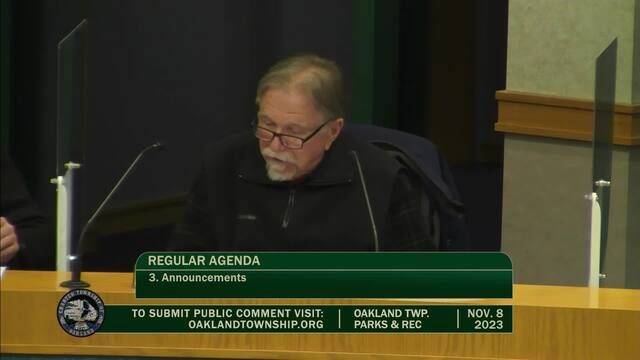 Held Nov 8, 2023; Township Hall, 4393 Collins Rd, Rochester, MI 48306.