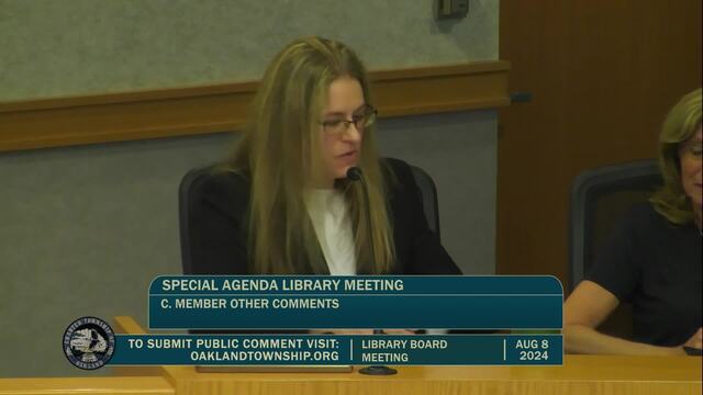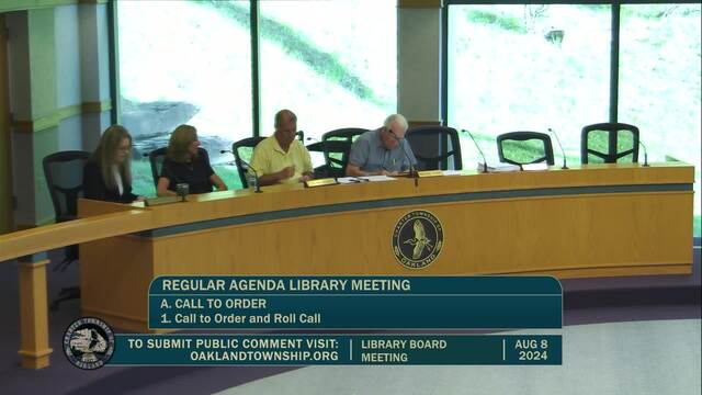 Library Board Meeting held August 8, 2024; Charter Township of Oakland 4393 Collins Rd Rochester MI 48306