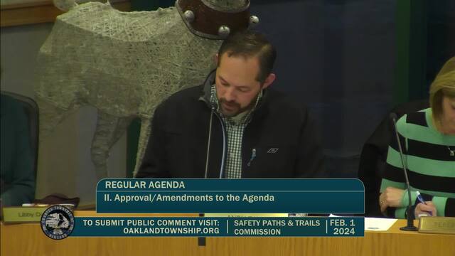 Safety Paths and Trails Meeting held Feb 7, 2024; Oakland Township 4393 Collins Rd Rochester MI 48306