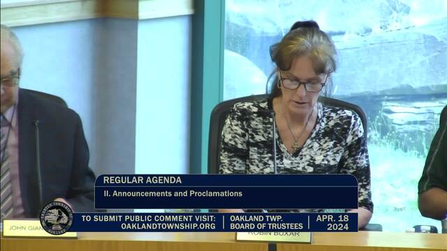 Board of Trustees Special Meeting held April 18, 2024; Charter Township of Oakland 4393 Collins Rd Rochester MI 48306