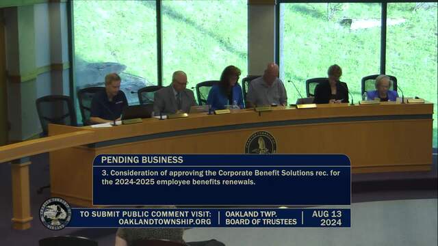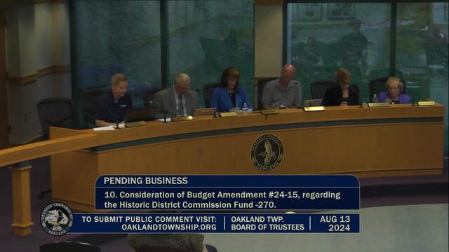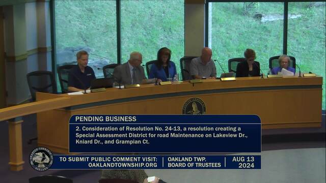 Held August 13, 2024; Township Hall, 4393 Collins Rd, Rochester, MI 48306.