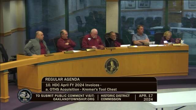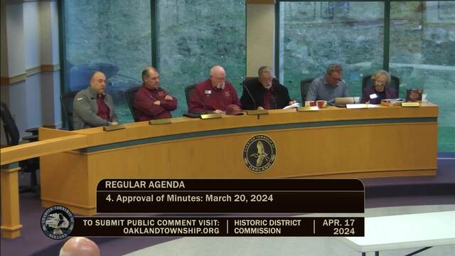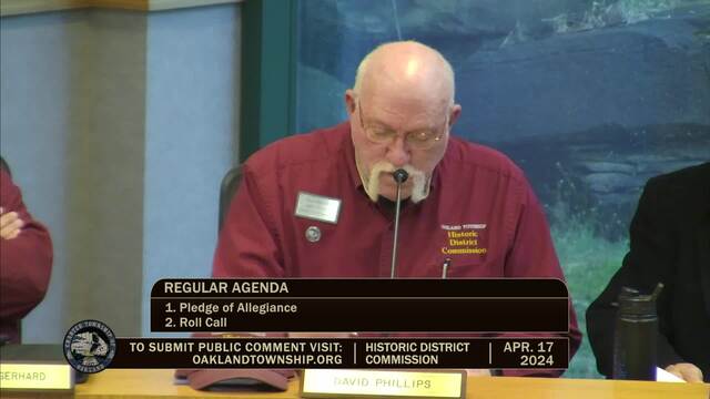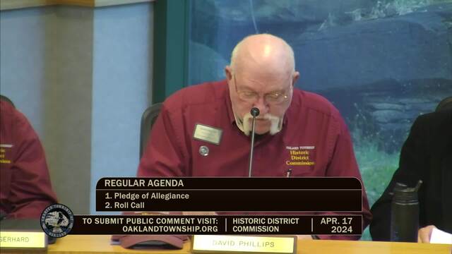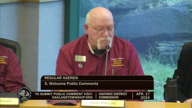 Historic District Meeting held April 17, 2024; Oakland Township 4393 Collins Rd Rochester MI 48306