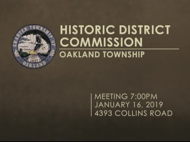 Charter Township of Oakland Historic District Commission Meeting held January 16, 2019