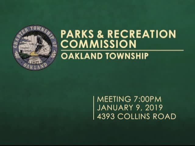 Charter Township of Oakland Parks & Rec Meeting held January 9, 2019; Township Hall, 4393 Collins Rd, Rochester, MI 48306