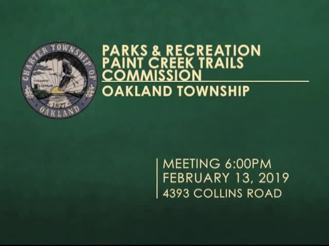 Charter Township of Oakland Parks & Rec Meeting held February 13, 2019; Township Hall, 4393 Collins Rd, Rochester, MI 48306