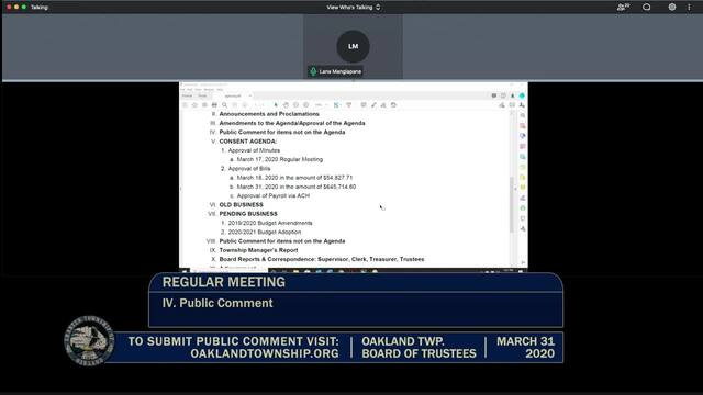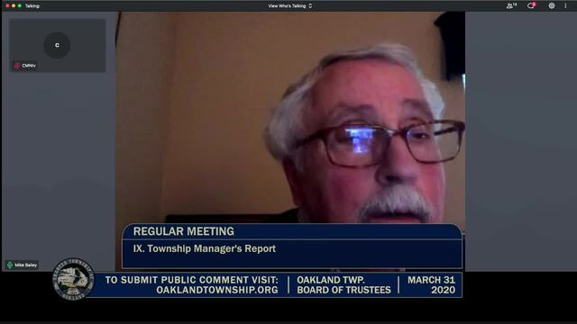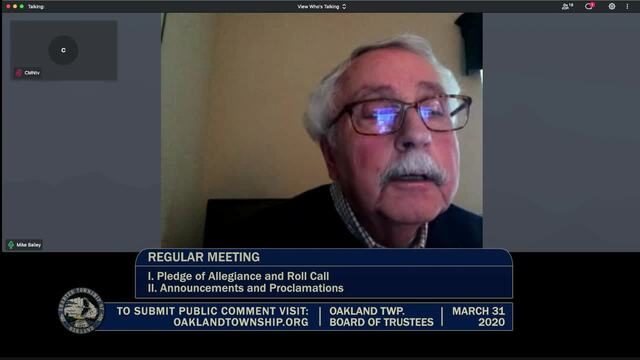 Held March 31, 2020; Township Hall, 4393 Collins Rd, Rochester, MI 48306.