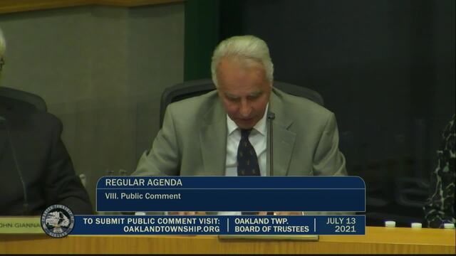 Held July 13, 2021; Township Hall, 4393 Collins Rd, Rochester, MI 48306.