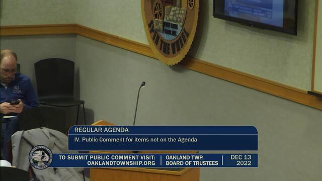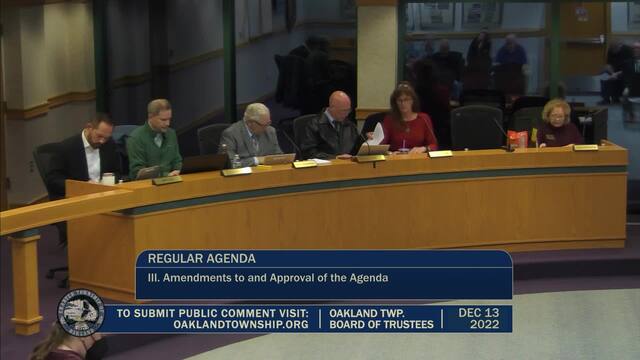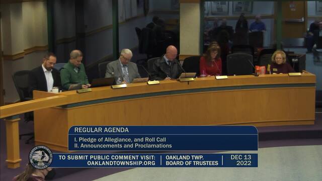 Held Dec 13, 2022; Township Hall, 4393 Collins Rd, Rochester, MI 48306.