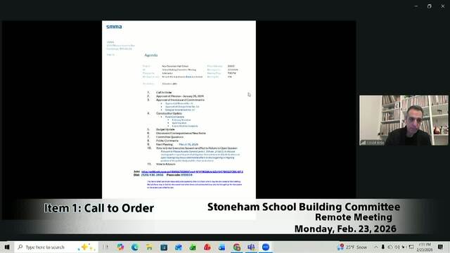 Stoneham School Building Committee Meetings from 2026.