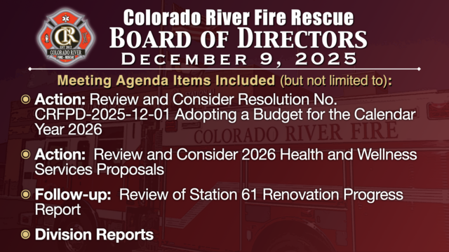 201:48:29Colorado River Fire Rescue Board of Directors • Nov 11, 2025