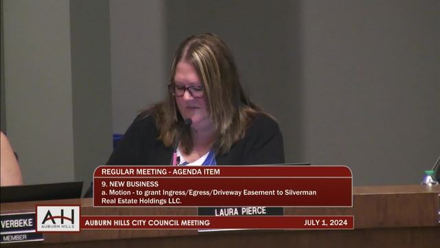 9. NEW BUSINESS 9a. Motion – To grant Ingress/Egress/Driveway Easement to Silverman Real Estate Holdings LLC