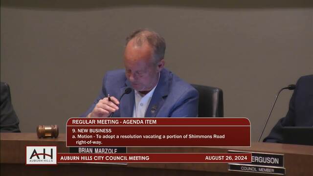 9. NEW BUSINESS 9a. Public Hearing/Motion – To adopt a resolution vacating a portion of Shimmons Road right-of- way. 9b. Public Hearing / Motion – To adopt an ordinance to amend Section 70-361. - Parking offenses; fines, of Article VII – Stopping, Standing, and Parking of Chapter 70- Traffic and Vehicles, of the Auburn Hills City Code on second reading. 9c. Motion – To award the Construction Contract for the 2024 M-24 (Lapeer Road) Improvements.