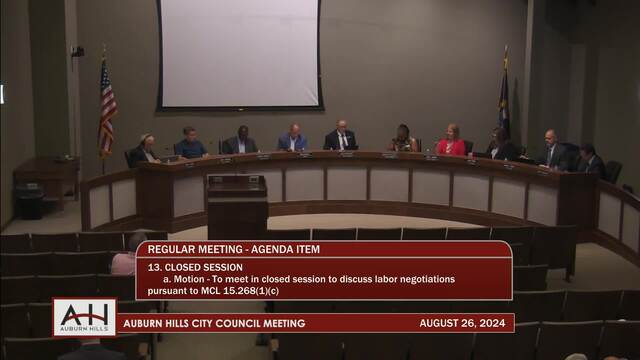 13. CLOSED SESSION 13a. Motion – To meet in closed session to discuss labor negotiations pursuant to MCL 15.268(1)(c) of the Open Meetings Act.