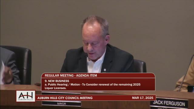 9a. Public Hearing/Motion – To consider renewal of the remaining 2025 Liquor Licenses.