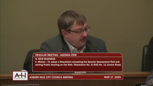 9h. Motion – To adopt a Resolution accepting the Special Assessment Roll and setting Public Hearing on the Roll (Resolution No. 4) SAD No. 11 Centre Road.
