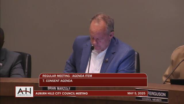 7. CONSENT AGENDA All items listed are considered to be routine by the City Council and will be enacted by one motion. There will be no separate discussion of these items unless a Council Member so requests, in which event the item will be removed from the Consent Agenda and considered in its normal sequence on the agenda. 7a. Board and Commission Minutes 7a1. Downtown Development Authority, April 14, 2025 7b. Motion – To adopt the 2025 Local Support Emergency Operations Plan to supplement Oakland County’s Emergency Operations Plan. 7c. Motion – To receive and file the Mariner Consulting 1st Quarter Cash Management Investment Performance Review. 7d. Motion – To amend the 2025 General Fund Seniors Department revenue and appropriation. 7e. Motion – To approve State of Michigan Board of County Road Commissioners, Oakland County, Agreement for traffic control devices for installation and maintenance of a traffic signal at N Squirrel Road and Shimmons Road.