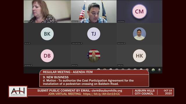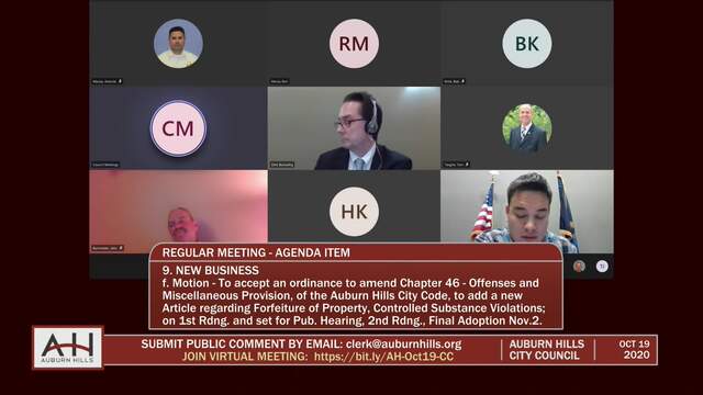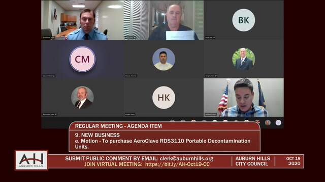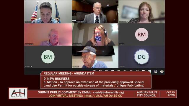 City Council Meeting held on October 19, 2020; Auburn Hills 1827 N Squirrel Rd Auburn Hills MI 48326