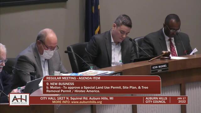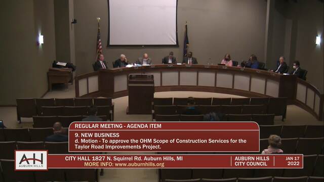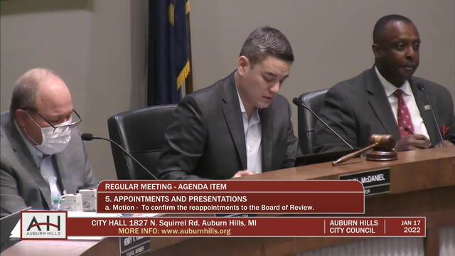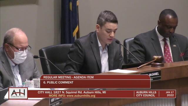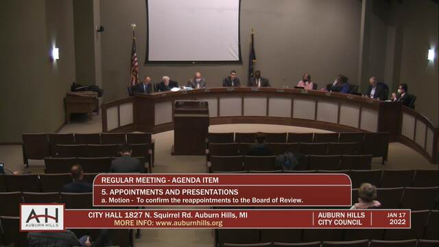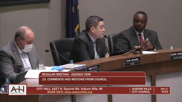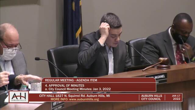 City Council Meeting held January 17, 2022; Auburn Hills City Hall 1827 N Squirrel Rd Auburn Hills MI 48326