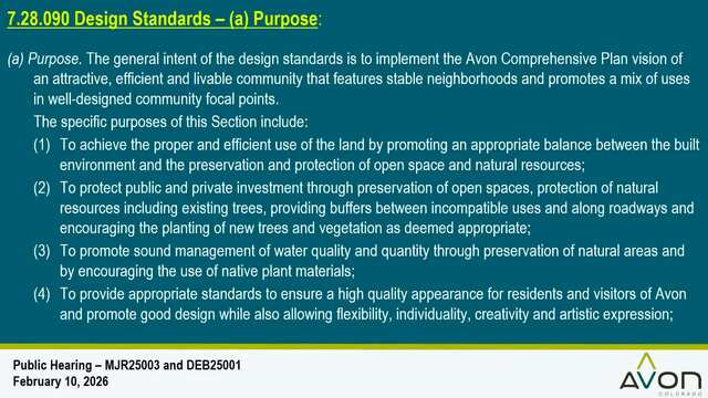 The Avon Town Council is the policy-making legislative body for the town. It consists of seven elected members and a mayor elected by the council. The council meets twice monthly, on the second and fourth Tuesdays of the month.