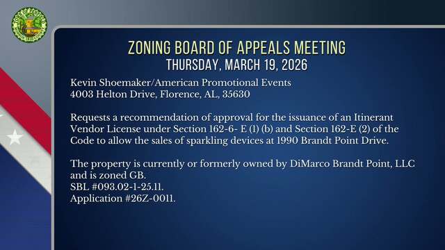 Regular meeting of the Zoning Board of Appeals for March 2026.